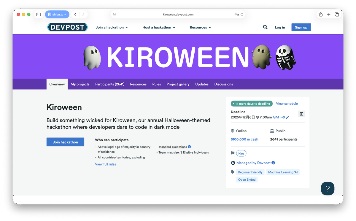 KiroweenはPro+相当のクレジット(2000)が無料で提供され、その中で開発するというものです。お化けアイコンにちなんだ、名前の通りハロウィンをモチーフにしていて、カテゴリーは以下の4つ。