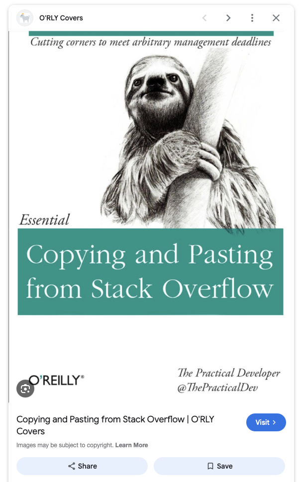 オーガニックプログラミング時代はAIがなかったので、みんなが上から下まで経験を積んで開発できた・・・というわけではありません。結局はサンプルコードのコピー&ペーストでものを作っている、という人は一定数いるでしょう。以下のようなジョーク画像が作られるほどです。