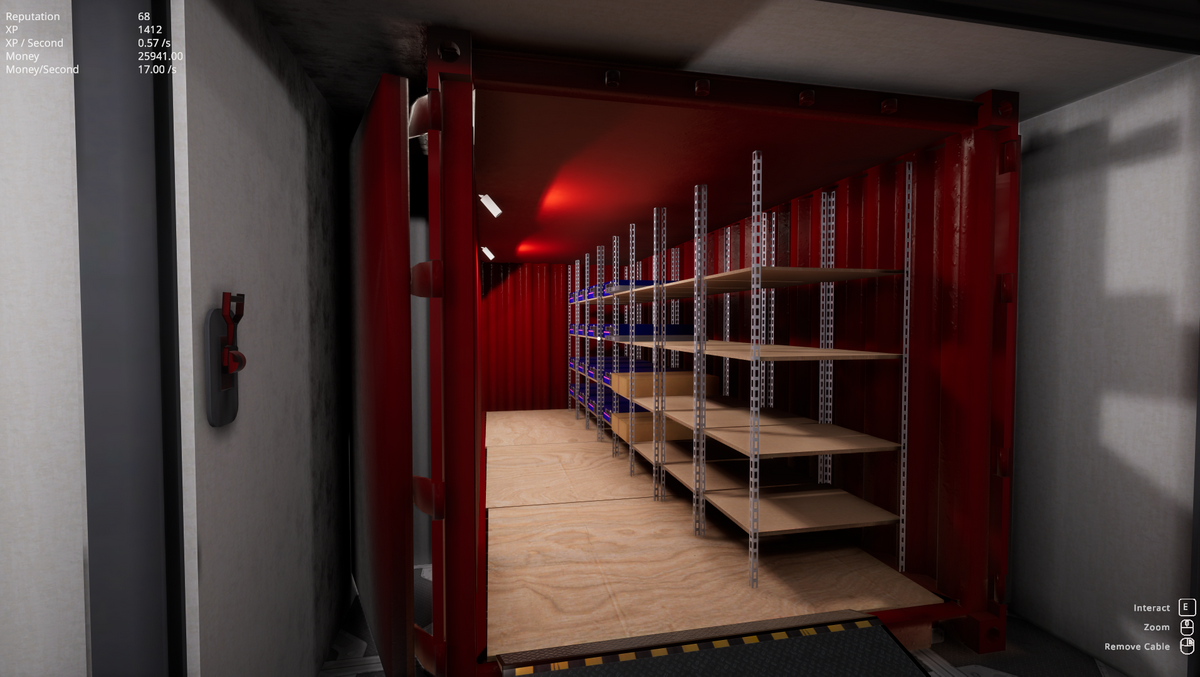 コンテナで届いた機材を台車で運び、ラックに組み込む。まさに「ゲームの中で仕事(作業)をする」感覚のゲームですが、好きな人にはたまらない没入感があります。