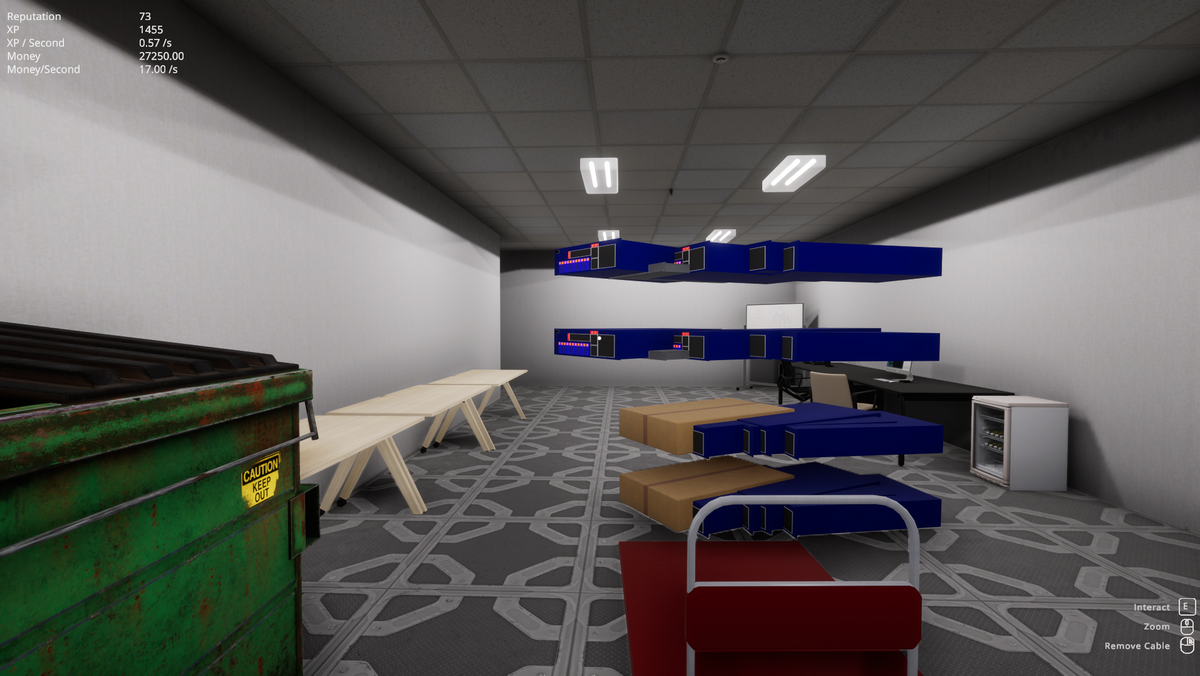 一言で言えば、「何もない部屋にラックを立て、サーバーをマウントし、LANケーブルを繋いで顧客の要望(タスク)に応えていく」ゲームです。